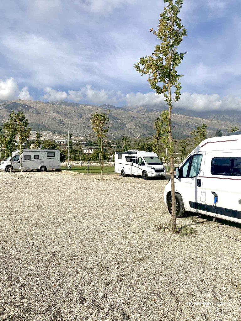 We stonden op een terrein met grote keien en veel onkruid. Geen wifi tot aan de camper. Sanitair oké. Goed om de stad te bezoeken. Minst goede plaats van onze trip in Albanië.