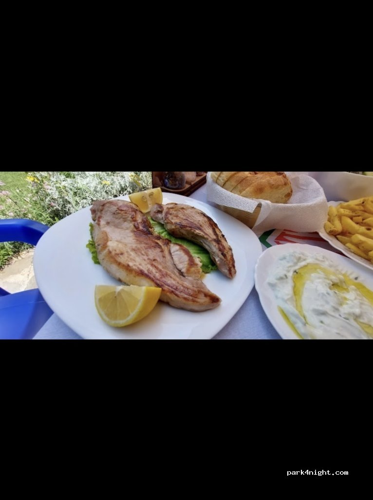 Didn’t stay overnight just did a service stop for Moho. €5 fee and the lovely lady owner brought us delicious Raki made from pomegranate with clove and cinnamon.