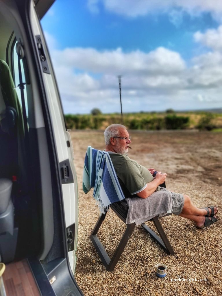 Toffe plek! Zoals de beschrijving het zegt gaat het puur om een parkeerplaats, maar wel een met fantastisch uitzicht (en veilig, hekken sluiten ‘‘s nachts). ‘s Avonds kun je een prachtige sterrenhemel bewonderen. Er werken fantastische gastheren die met alle liefde over hun toekomstplannen voor de herdade uitleggen. Heren, veel succes. Wij komen zeker terug.