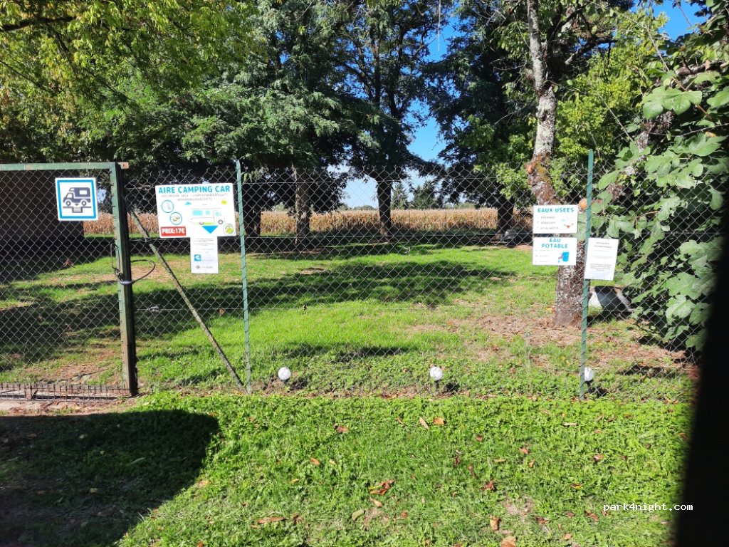 Just outside Bergerac, towards Sarlat, you'll find a quiet and secure area on private land. Easy access and a stabilized surface. Shaded area. It's located on a former farm dating back to the 1850s.