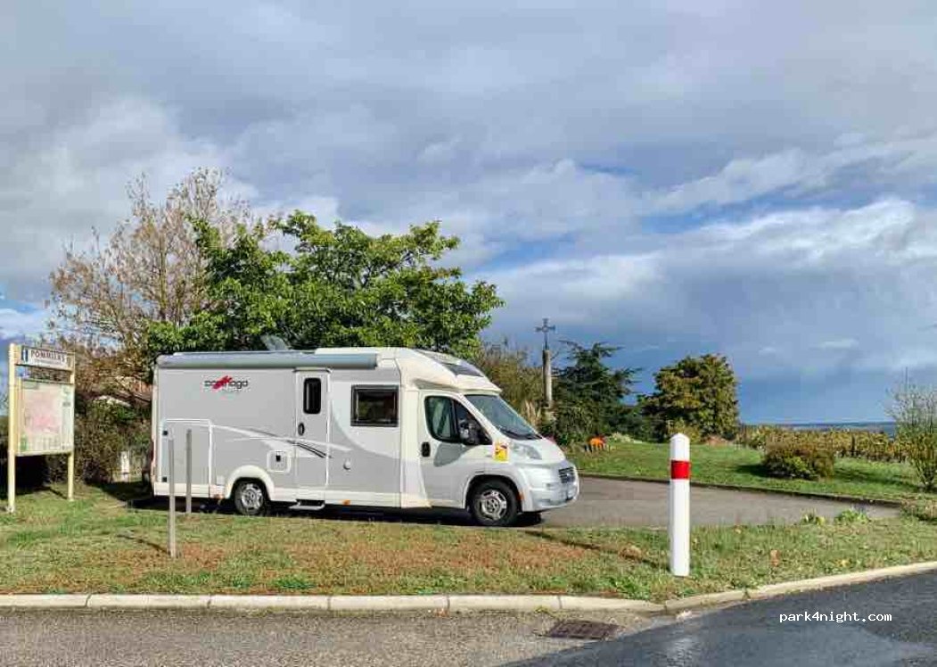 Très jolie vue. Table de pique nique et poubelle. Une seule place de parking sur les 3 prévues car les autres barrées. Nous y avons mangé un midi.
