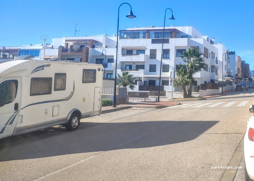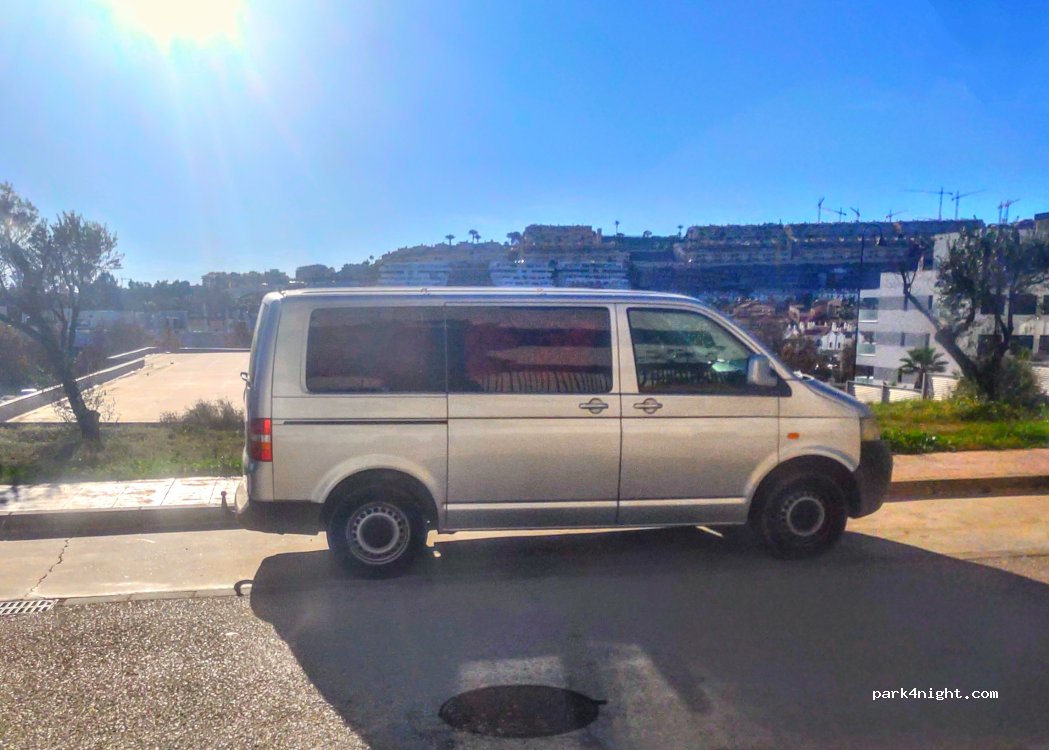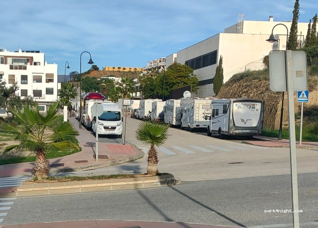 Paved roadside parking where campers and vans can stay on day and on night for free. There aren't any services. Supermarkets are nearby and many restaurants are in the area. La Cala De Mijas is about 1 kilometer away and the closest beach (La Cala Beach) is about 700 meters away from the parking. Malaga is about 40 kilometers away.