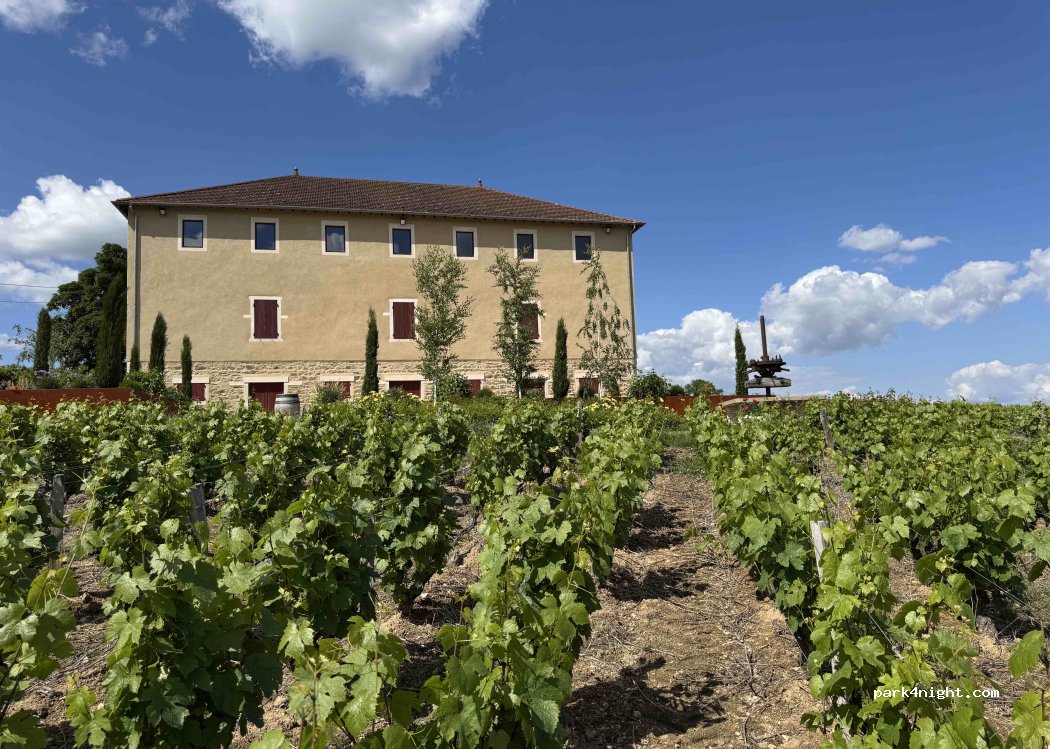 Magnificent location in the middle of the vineyards, next to the newly renovated winery, toilets, showers, pétanque court and barbecue.