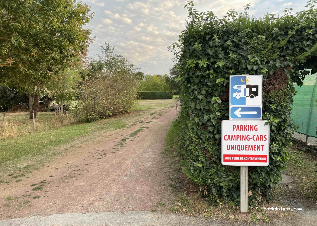 Pas accessible l'hiver, mais le parking du stade, au fond, est très bien aussi, pour une étape. Le distributeur de pizzas a été retiré. La boulangerie ouvre les lundis et jeudis à 16h30. Même horaire, petit marché à O'Bar à thym au carrefour central les jeudis. Belle balade au Parc de Château derrière le stade.