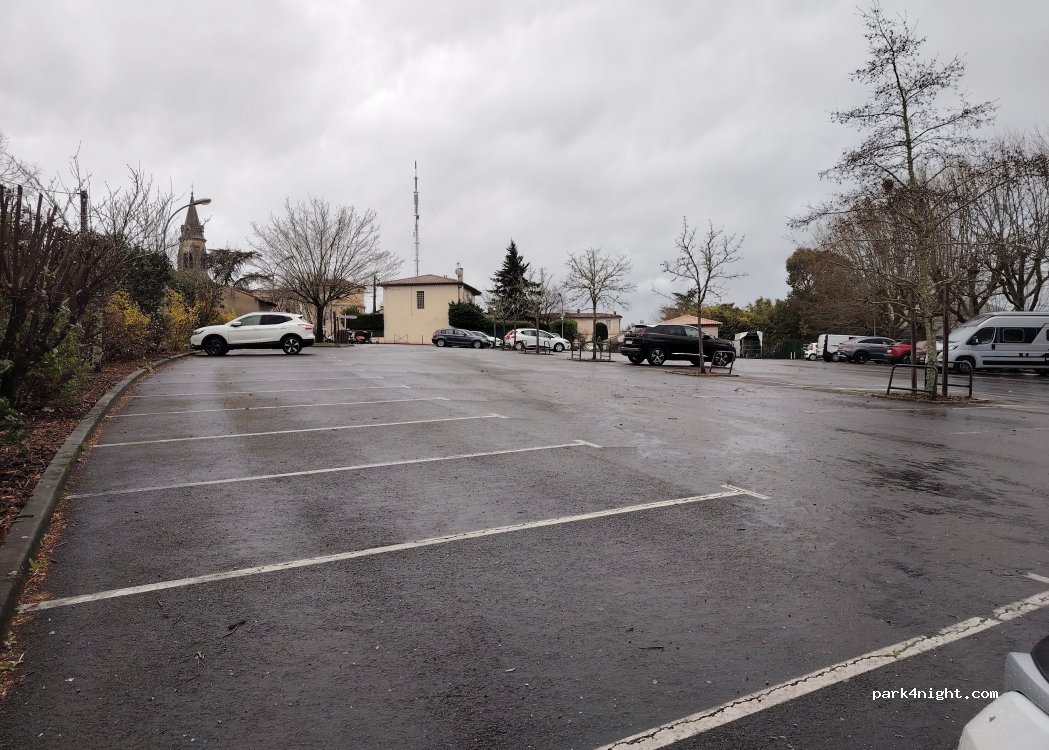 très bon emplacement calme et propre. Venu un jeudi vers 23h après un concert à l'aréna nous avons trouvé immédiatement de la place. Arena à 7 min. En effet le fond du parking est à peu près droit. Nous nous sommes garés très facilement avec notre grand campeur. pas de service Super vue de Bordeaux à 20 m boulangerie et restaurant