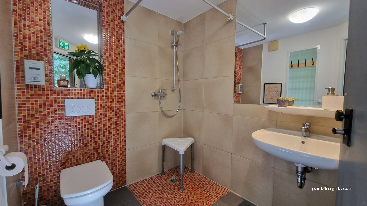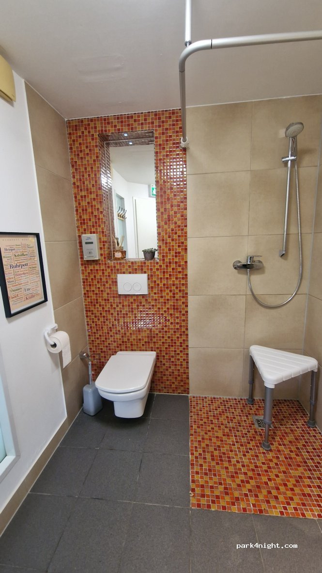 What else? In 10 minutes, you're at the bakery, supermarket, restaurant, and pedestrian zone. There's also a dog park just around the corner. And our washroom is really modern and clean, so you can scrub your back. So, don't hesitate and head off to "the Grubengeist."