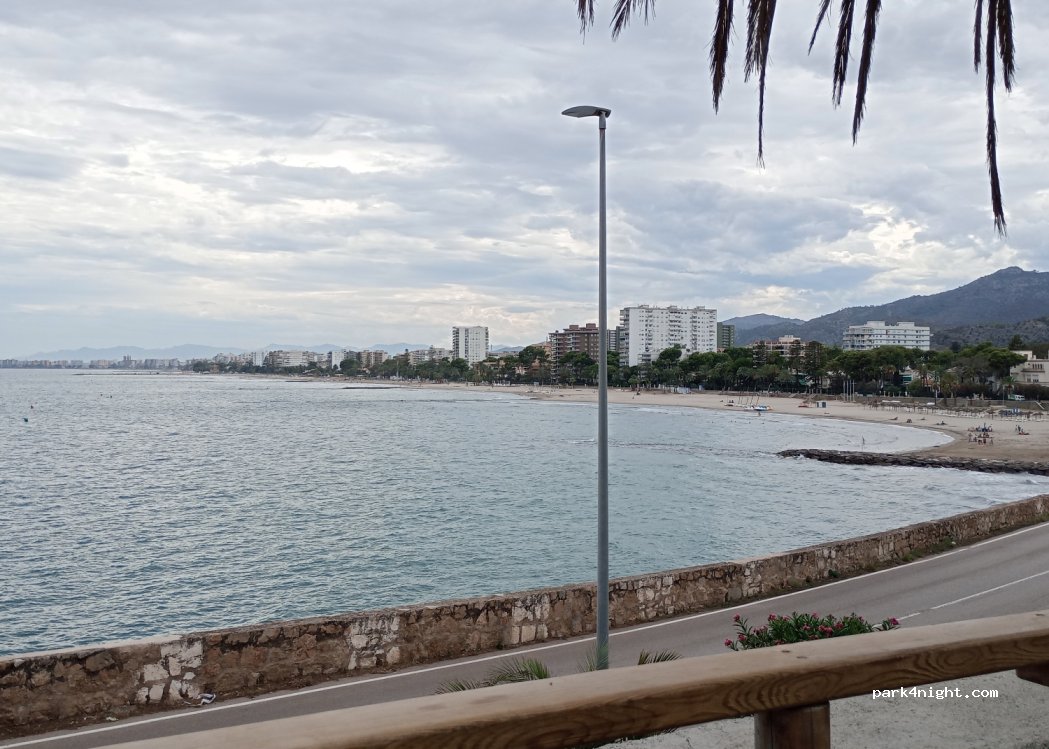 Parcheggio pubblico vicino alla spiaggia e all'inizio del percorso verde che va da Benicásim a Oropesa. Ideale per il pernottamento (almeno fuori stagione), non ci sono cartelli di divieto e non c'era il veicolo per l'arrivo in tarda serata. Ha una certa pendenza. Poco traffico notturno e mare un po' rumoroso se è mosso, si sente l'umidità ma la vista al risveglio ne vale la pena. Adatto per furgoni o piccoli camper.